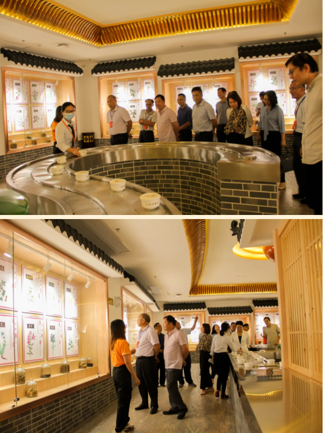 市人大常委會調(diào)研組成員在副總裁和文旅部負(fù)責(zé)人的引領(lǐng)下分別參觀了園區(qū)內(nèi)養(yǎng)生健康館、彭祖養(yǎng)生湯體驗區(qū),彭氏名人館、廣東南藥館、名貴藥材館和衍生館,聽取了產(chǎn)業(yè)園的功能定位、配套設(shè)施、發(fā)展目標(biāo)、服務(wù)政策等基本情況介紹,同時與企業(yè)相關(guān)負(fù)責(zé)人圍繞衍生主營業(yè)務(wù)、特色服務(wù)、經(jīng)營模式等方面進行了深入交談。